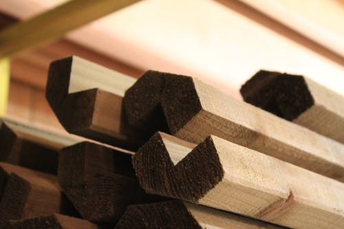 Cornière d'angle Mélèze de Sibérie raboté. Choix Non classé. Dimensions: 56mm x 56mm x 4m.