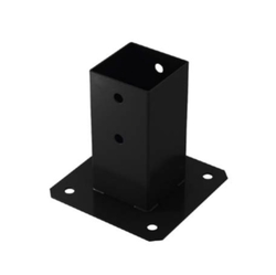 Pied de poteau fixe en acier galvanisé. Dimensions: Hauteur: 100mm. -Platine inférieure: 130 x 130mm - Platine supérieure: 100 x 100mm. 8 trous de