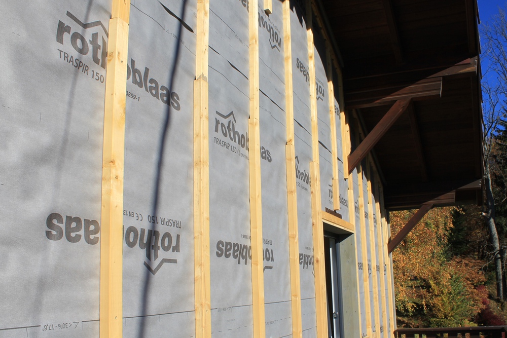 Collage en intérieur et extérieur des joints de recouvrement, des raccords de lés (pare-vapeur/sous-toiture/façades) et des panneaux.